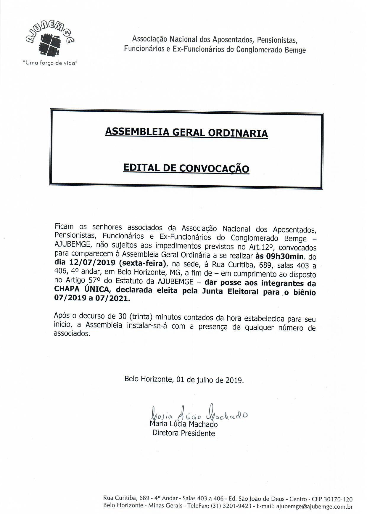 EDITAL CONVOCACAO 2019 JULHO